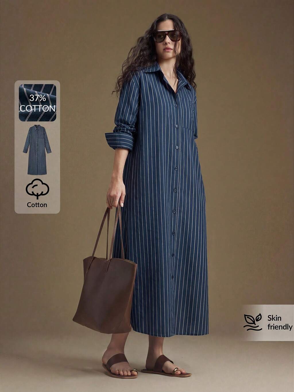 2026SS Women's Striped Shirt Dress, Loose Long Casual Dress For Urban Commute, Business, Vacation, Beach, Wedding Guest, Elegant Dress