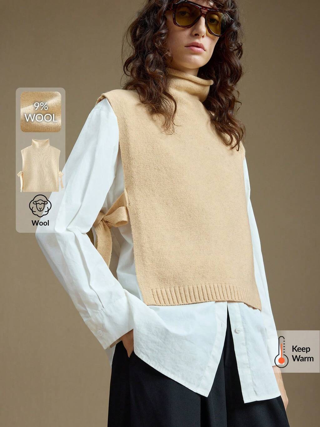 Women's Soft Knitted Blend Turtleneck Sweater With Side Tie Closure, Versatile For All Seasons, Fashionable And Comfortable For Casual, Business, And Travel Wear Modern Urban Casual Fashion Business Casual Women's Office Wear Low-Key Old Money Style Effortless Temperament High-End Urban Commuting High-Quality Airport Women's Wear High-End Material Versatile And Comfortable Wool Sweater For Fall And Winter