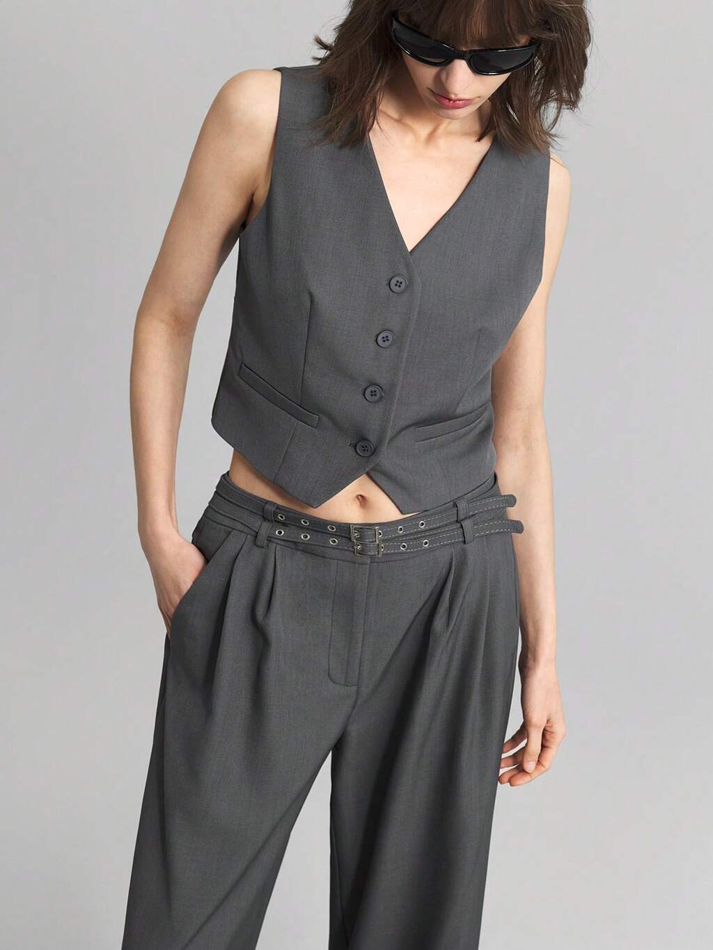 Women 2 Pieces Suit Set: Solid Color Single-Breasted Vest And Pleated Pants, 2025 Spring/Summer Ladies Office Wear, Professional Casual Outfit