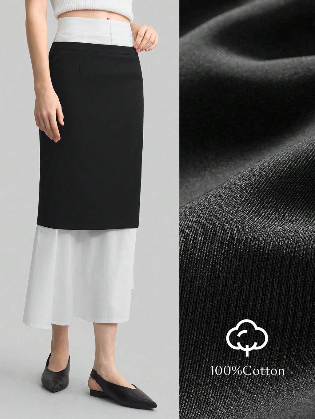 Women's Elegant Colorblock Splice Skirt, Suitable For Daily Commute, Spring/Summer 2025