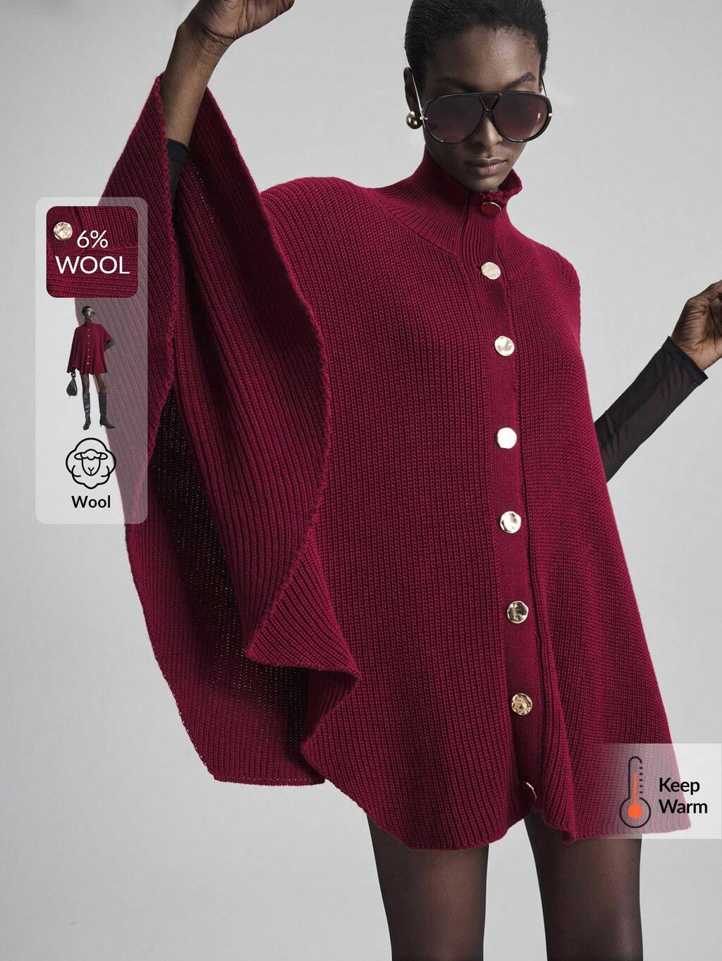 Women's Casual Solid Color Button Wool Blend Poncho Shawl Sweater, Autumn/Winter Modern Urban Casual Fashion Business Casual Women's Office Wear Low-Key Old Money Style Effortless Temperament High-End Urban Commuting High-Quality Airport Women's Wear High-End Material A Must-Have For Autumn And Winter: A High-End, Comfortable, Vintage-Style Jacket High-End, Elegant, Old-Fashioned Cruise Attire For Wedding Guests Christmas Evening Clothes New Year Atmosphere Holiday Party Women's Clothing High-End, Elegant, Old-Fashioned Cruise Attire For Wedding Guests