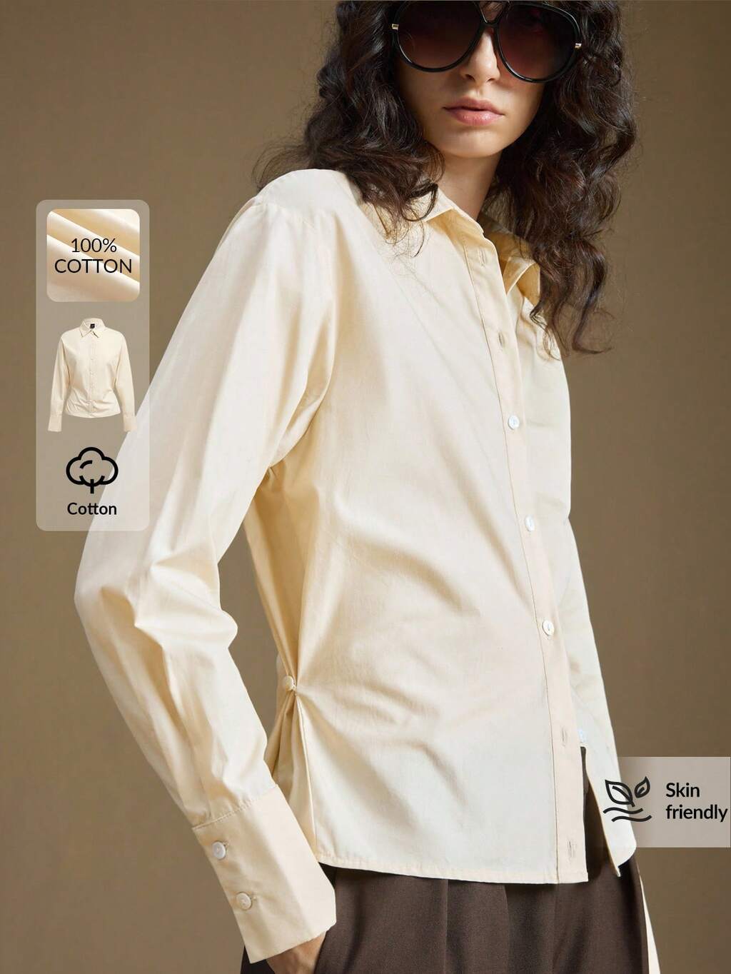 Women's Light Apricot Comfortable Fabric Shirt, Collared, Long Sleeve, Front Button Closure, Waist Cinched Design, Flattering Silhouette, Modern Urban Casual Chic Business Wear, Low-Key Elegant Vibe, High-Quality Airport Fashion, Versatile For All Seasons, Suitable For Autumn/Winter, Layering, New Year, Christmas Party, And Gatherings A Must-Have For Autumn And Winter: A High-End, Comfortable, Vintage-Style Jacket Back-To-School Season Campus Wear Club Wear Youthful Casual Style Christmas