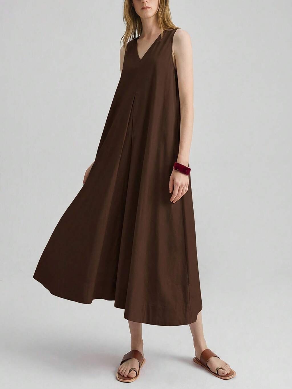 2025 Women's Solid Color V-Neck Sleeveless Maxi Loose Dress, Elegant Vacation Dress For Beach, Music Festival, Halloween, Christmas Party, Countryside Concert