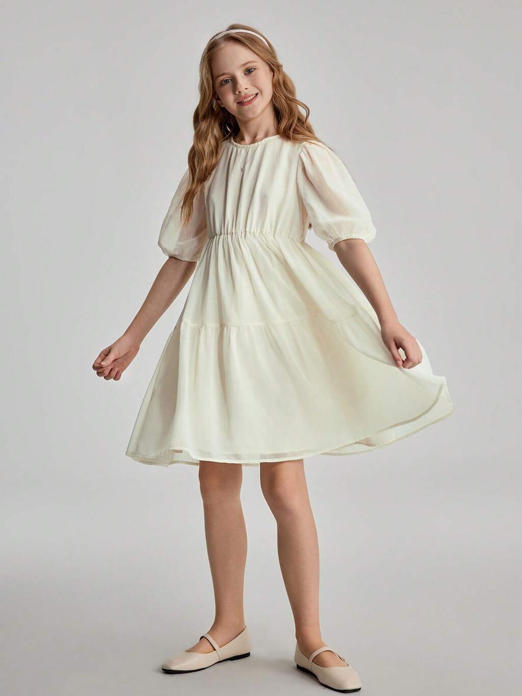 Tween Girls' Loose Casual Puff Sleeve Solid Color Blouse