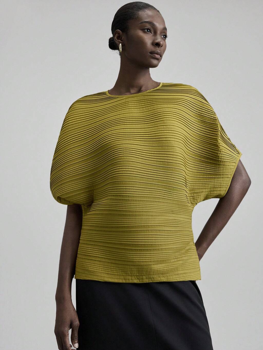 2025 Autumn/Winter Seasonal Women's, Back To School, Halloween, Christmas, Teacher's, Night Out Wear, Business Casual Ruched Batwing Sleeve Top