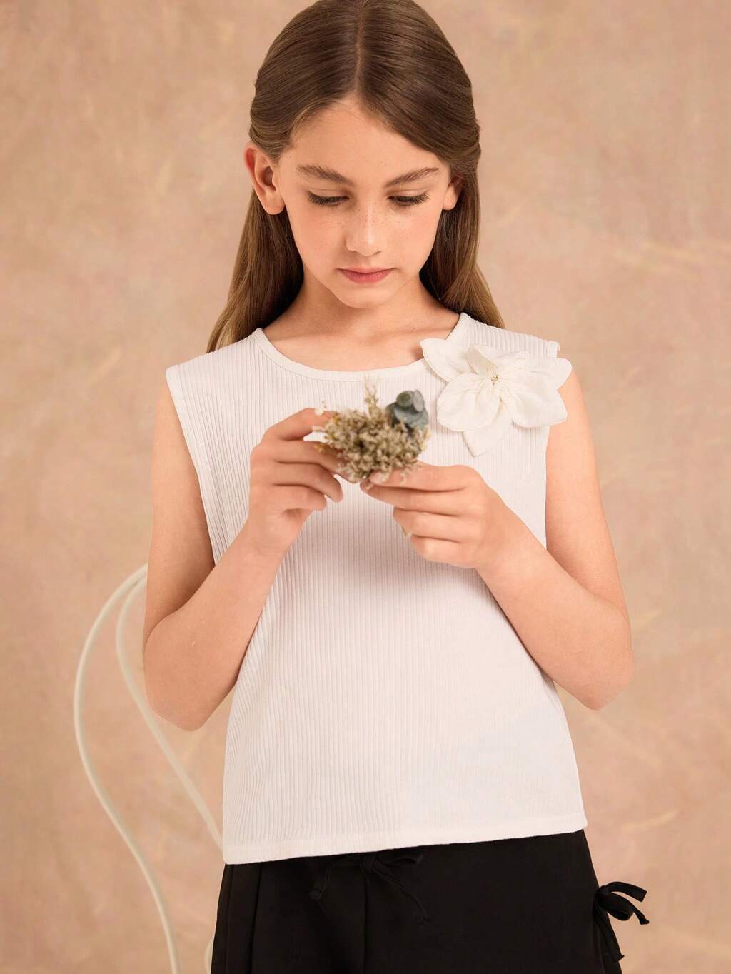 Tween Girls' Elegant 3D Floral Decorated Tank Top, Summer