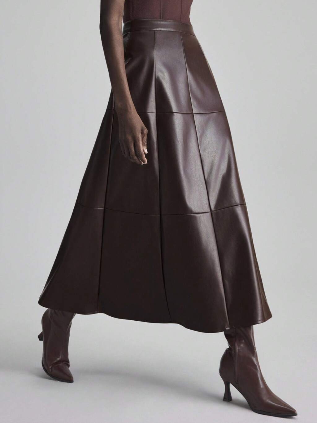 2026SS Women's A-Line Skirt, Solid Color Wine Red, Slit Design, Office Wear, Party, Valentine's Day, Vacation, Wedding Guest, PU Leather Loose Fit Skirt, Spring/Summer