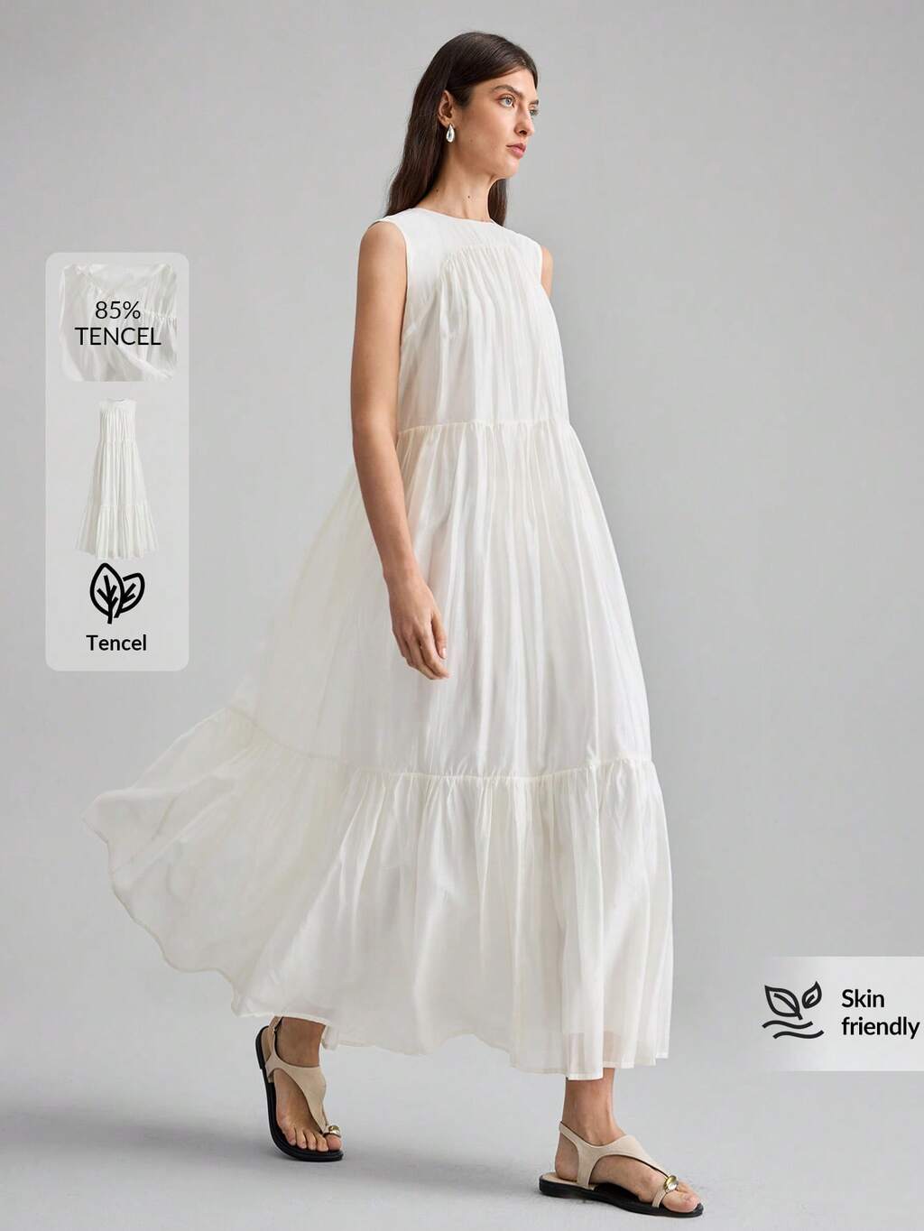 Women's Sleeveless Pleated Dress, Elegant Long Dress For Ladies, Suitable For Beach, Party, Business Casual, Spring/Summer