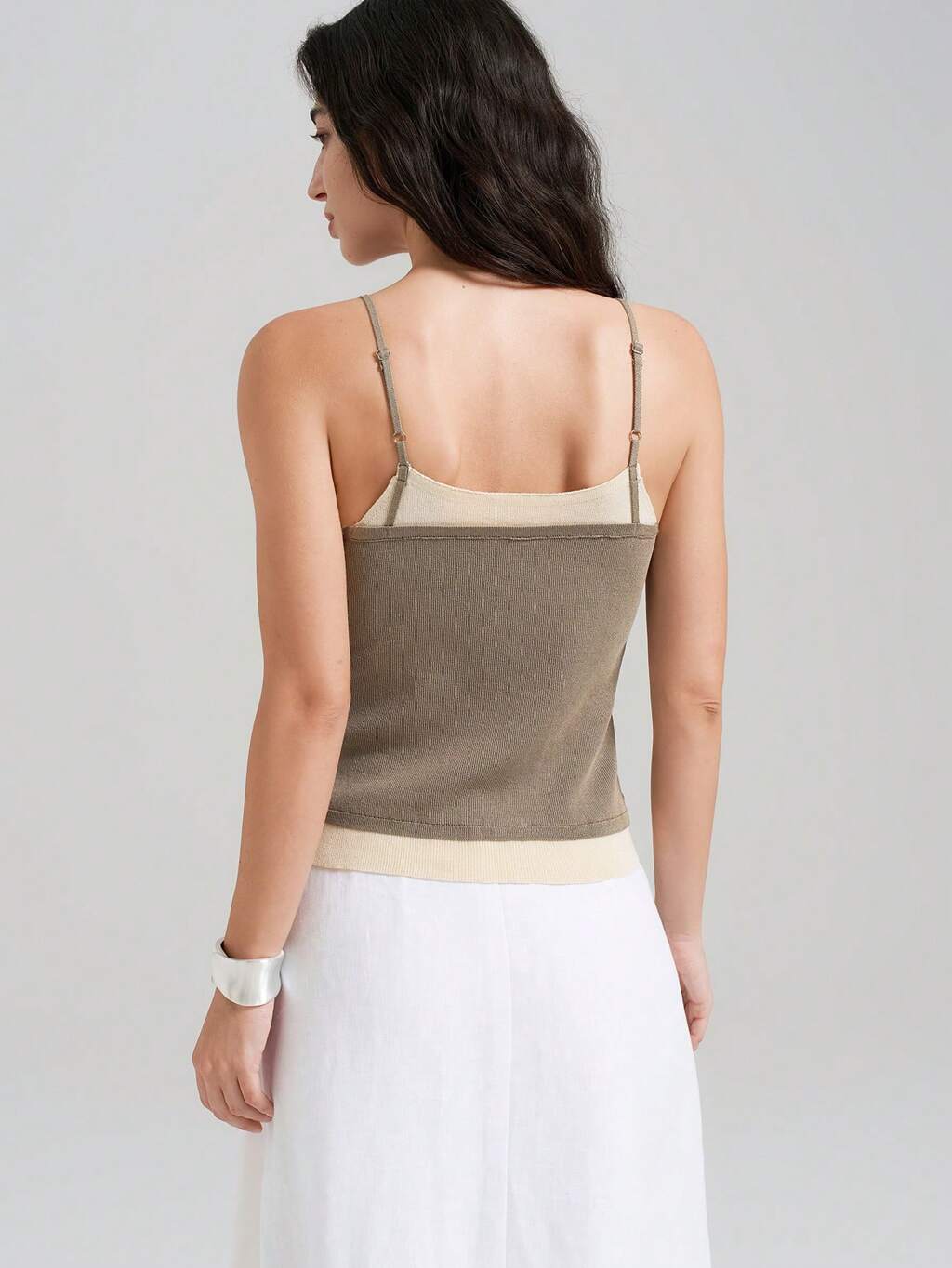 Urban Style Women Knit Top, Contrast Color Design Sleeveless Tank Top, Minimalist Spring/Summer Casual Wear, New 2025 Collection