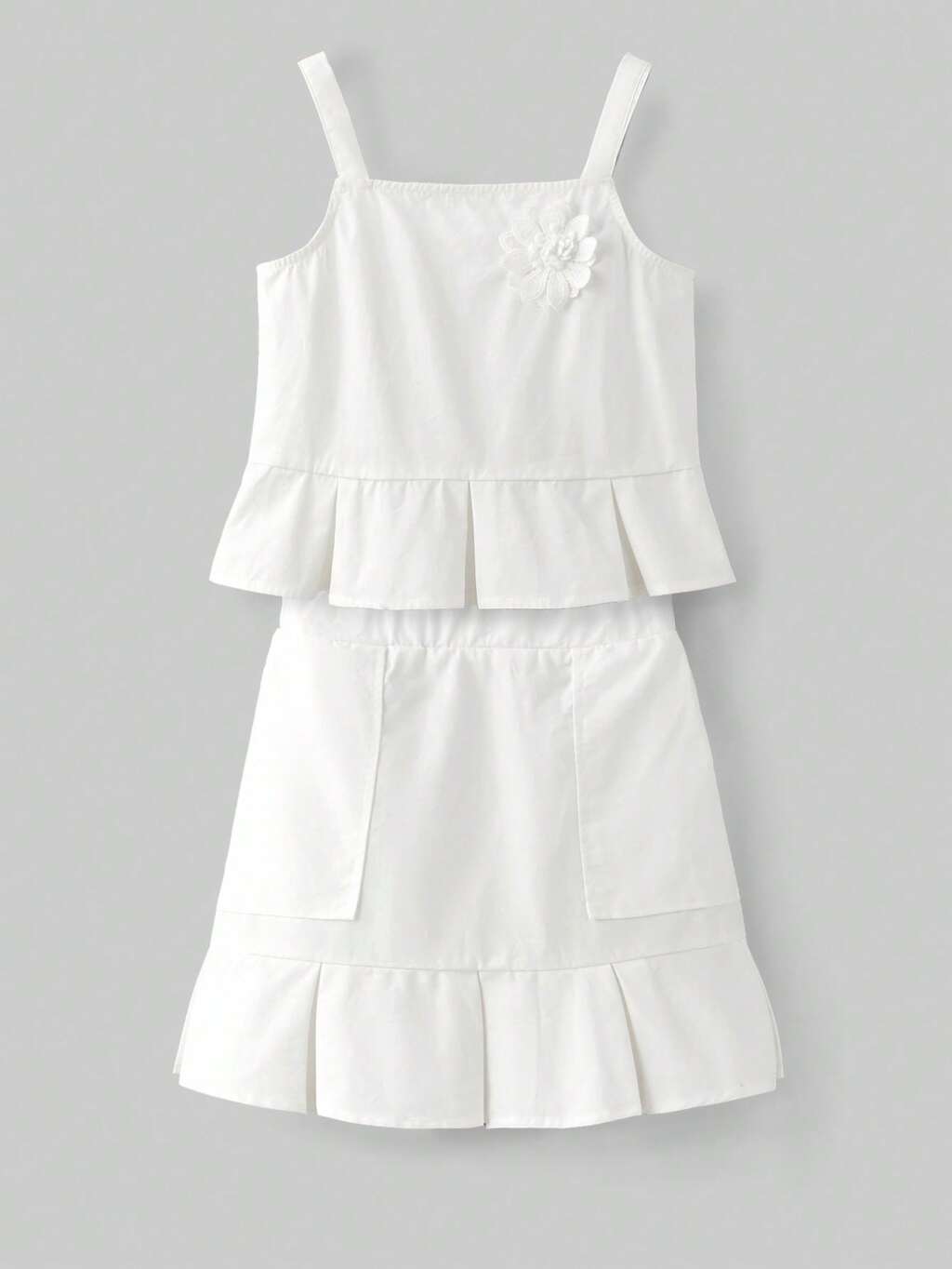 Tween Girl Loose Casual 3D Floral Decor Camisole And Mini Skirt 2 Pieces Set