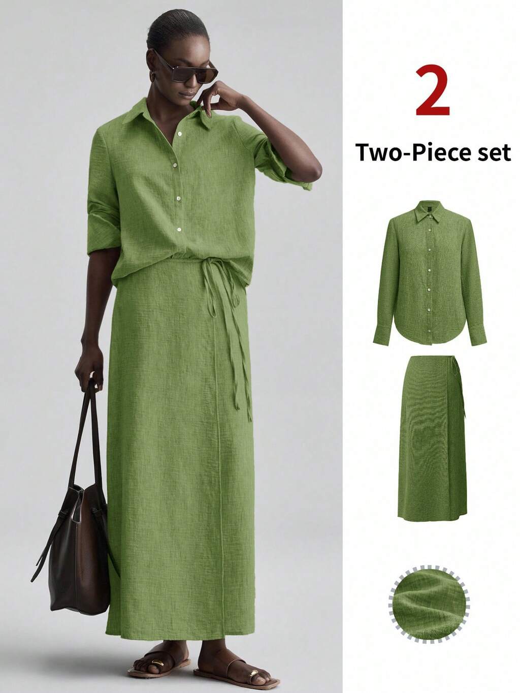 2026SS New Woven Fabric 2 Pieces Set, Button Design Shirt And Side Tie Waist Skirt, Suitable For Valentine's Day, Wedding Season, Independence Day, Urban Chic, Minimalist Fashion, Commute, Valentine's Day, Wedding, Wedding Guest Attire, Holiday Outfit, Romantic Valentine's Day, Design Elements, Elegant, Teacher's Day Outfit, Tea Party, Party Wear, Casual Loose Daily Women's Bestseller Solid Color, Office Outfit, Holiday Wear, Back To School Light Vacation Style, Daily Wear, Women's Spring Summer Casual, Fashion Versatile 2 Pieces Set