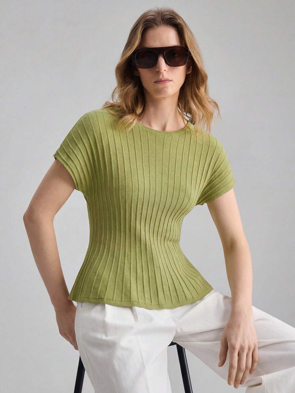 2026SS New Women's Sweater, Short Sleeve Knitted Top, Toothpick Stripe Design, Solid Color Round Neck Short Sleeve Fashion Versatile Sweater For Women, Suitable For Wedding Season, Wedding Guests, Holiday Parties, Romantic Valentine's Day, Waist Cinching, Loose Fit, Spring/Summer, Office Wear, Casual Outings, Casual Spring/Summer Attire, Independence Day, Urban Chic, Minimalist Stylish Commuter Sweater