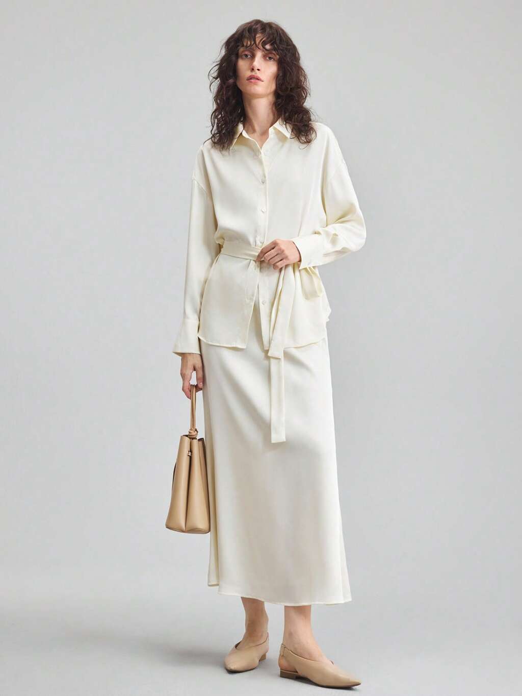 2025 New Design, Minimalist Style, Urban Commute, Urban Vibe, Khaki Women's Skirt, Satin Material, Side Invisible Zipper, Daily Wear, Women's Office Business Casual Outfit