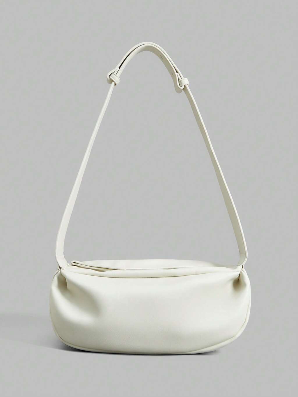 Women's Solid Color White Chic Shoulder Bag, Suitable For Summer