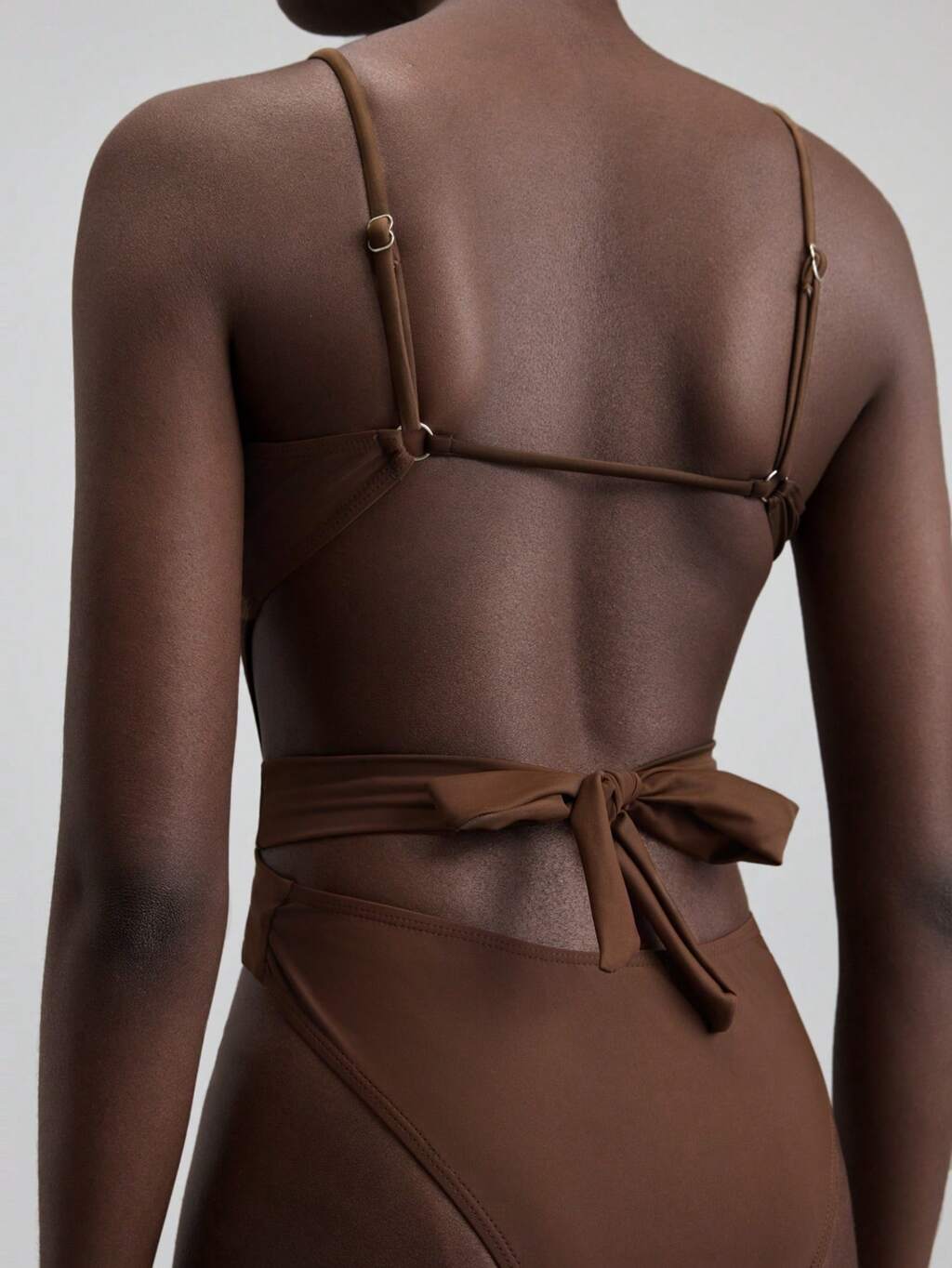 Women Beach Outfit, Ladies Holiday Wear, Women's Apparel, Holiday Style, Holiday Fashion, Women's One-Piece Swimsuit, Brown, Spaghetti Strap Design, Minimalist Design, Summer Clothing, 2025 New Arrival, Beach Swimwear, Holiday Swimsuit, Old Money