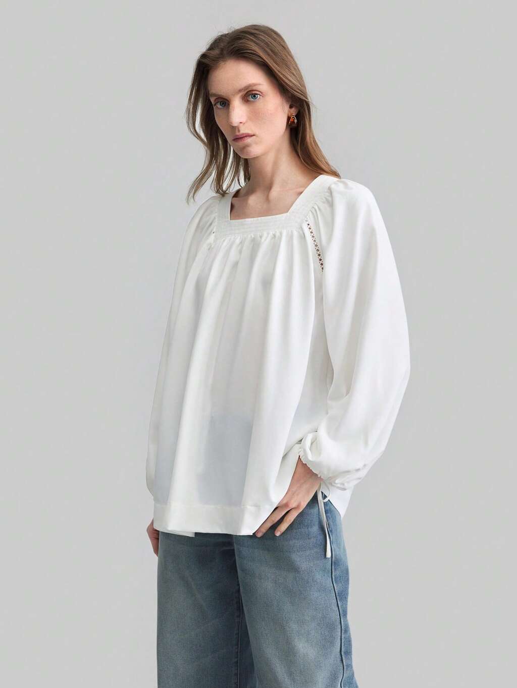 여성 스퀘어 칼라 래글런 슬리브 롱 슬리브 루즈 캐주얼 블라우스