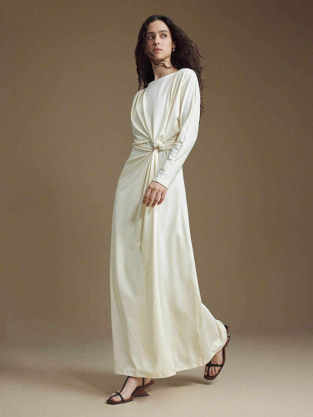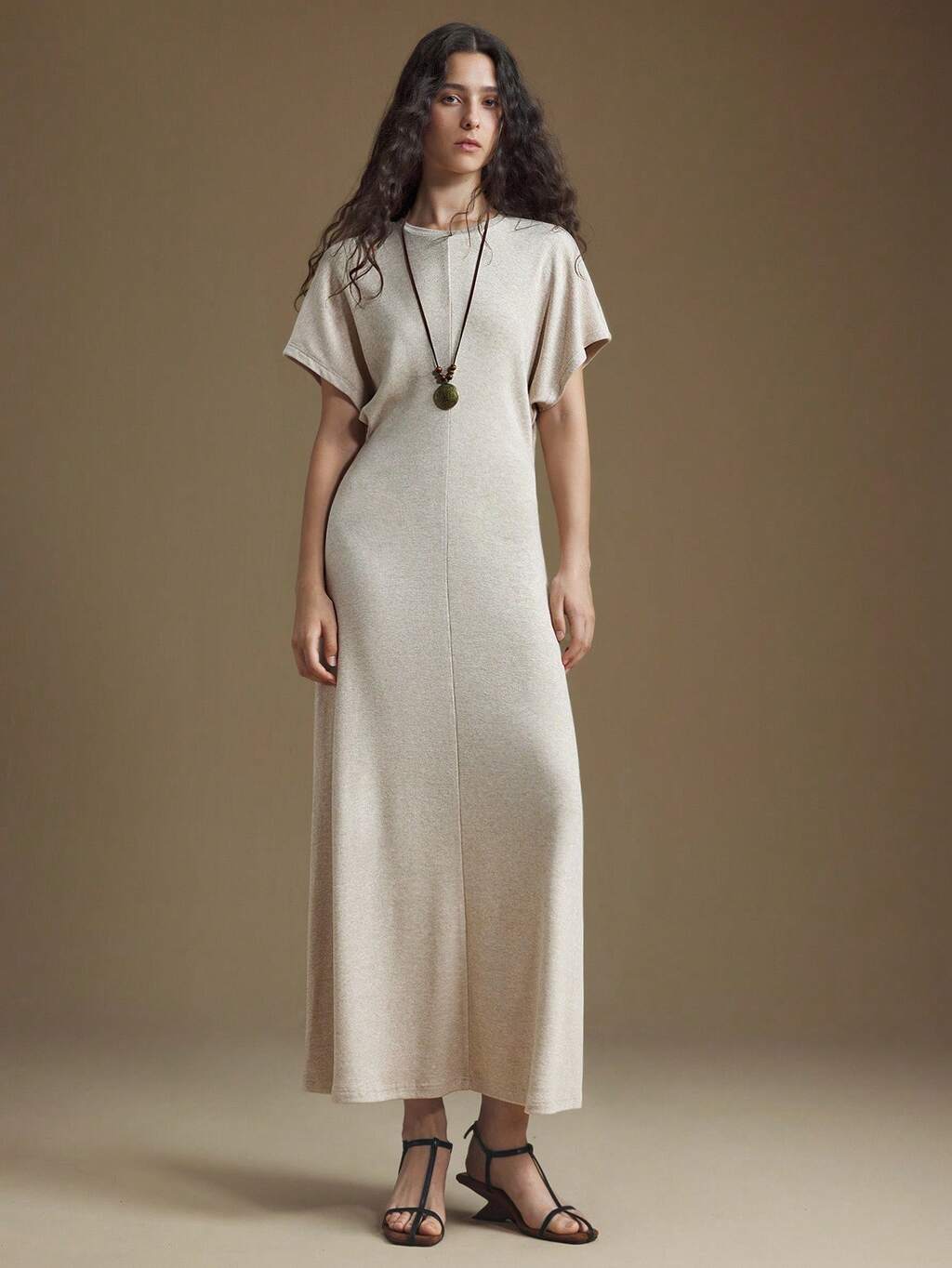 2025 Nuevo vestido largo de mujer para otoño/invierno, de alta calidad, en color marrón café, beige, de unicolor, con cintura ceñida, de tela de punto suave, mangas de murciélago, silueta ajustada, corte recto, con cuello de solapa, estilo empresarial casual, estilo coreano para uso diario, para otoño/invierno, Halloween, Navidad, maestros, fiestas de vacaciones, moda Jiading, vestido de mujer de moda, cuello redondo, estilo urbano chic, minimalista elegante, vestido versátil de mujer