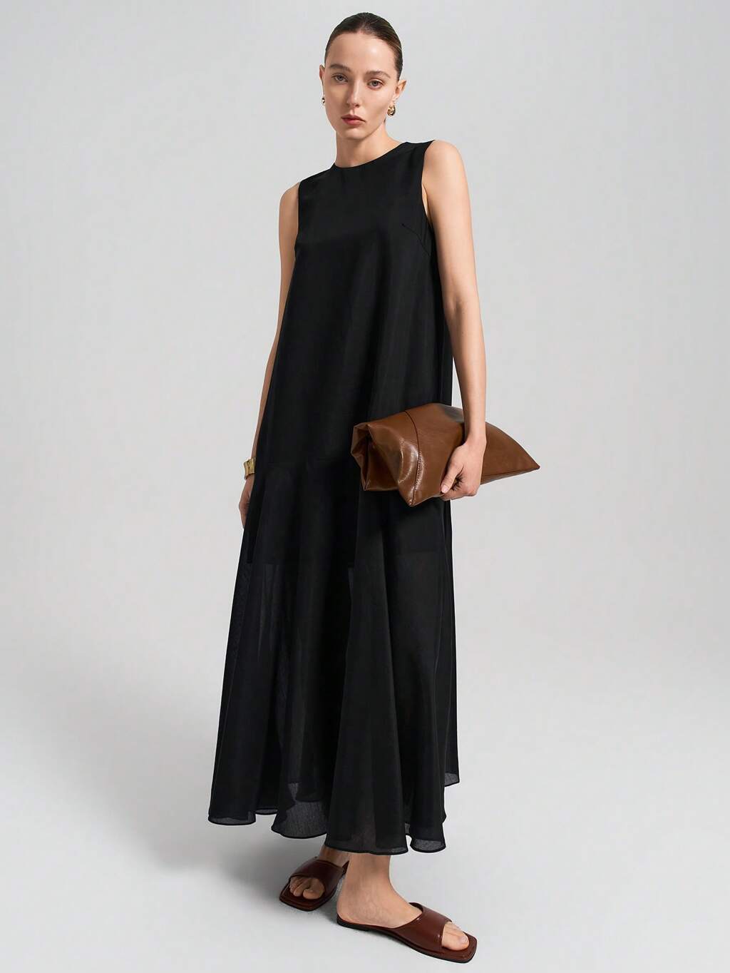 Vestido maxi de unicolor simple con decoración metálica, primavera/verano 2025, negro, vestido de graduación para mujer, vestido casual, vestido de Pascua, vestido elegante, vestido fluido, vestido de fiesta, vestido minimalista, vestido de Pascua, vestido de fiesta, vestido digno, vestido de vacaciones para mujer, vestido cómodo, vestido de dama de honor, vestido de playa