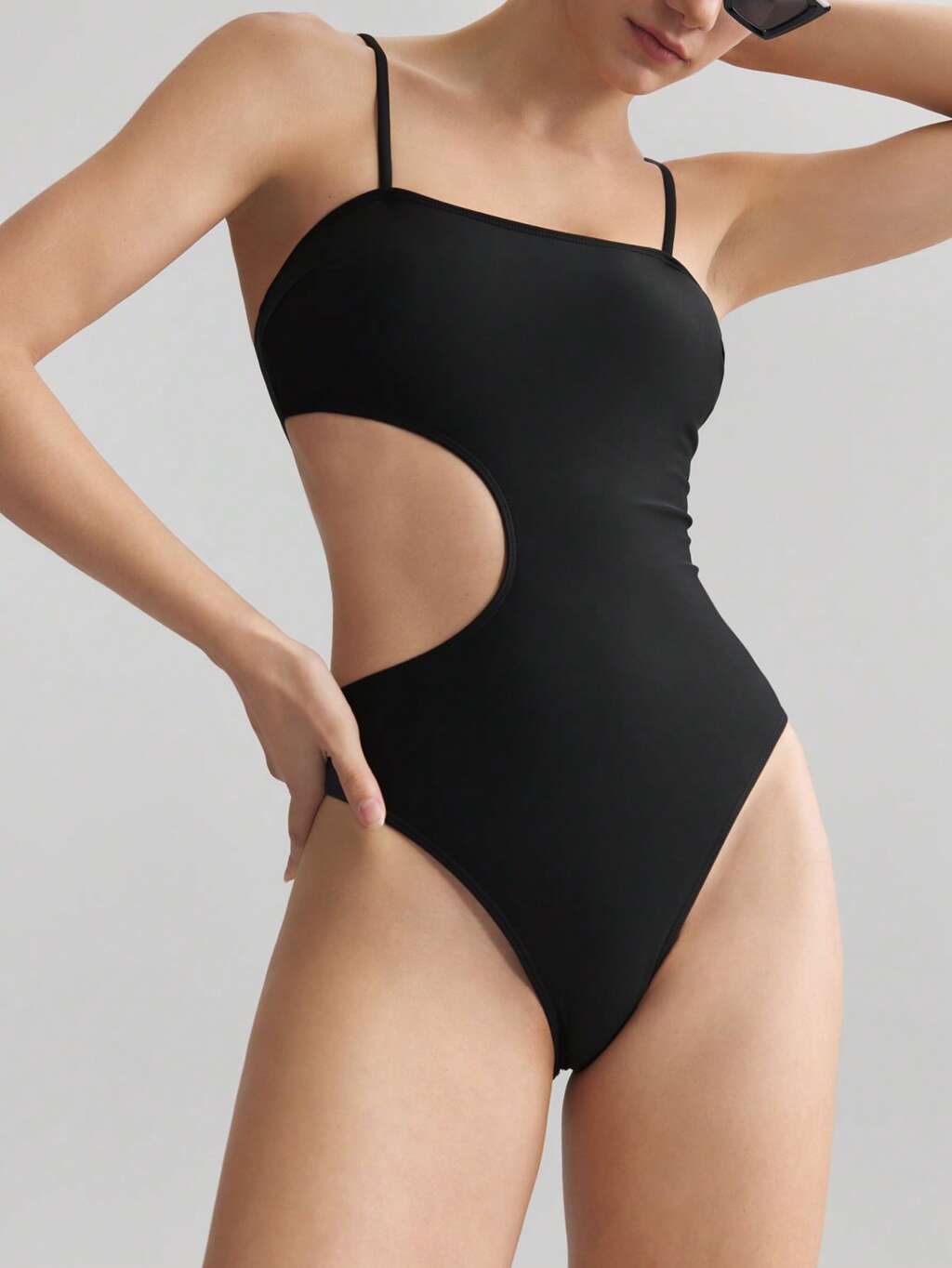 Traje de baño negro de una pieza de estilo minimalista y de vacaciones para mujeres, modelo 2025, con cortes, sin mangas, adecuado para ropa de playa de primavera/verano