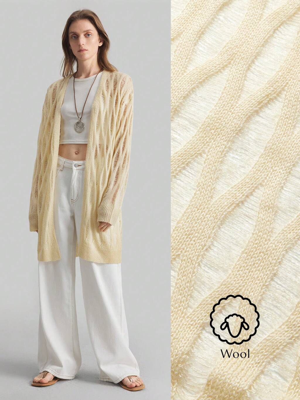 Cardigan in stile hippie da donna, in lino vintage, lavorazione a maglia traforata e motivo speciale, maniche lunghe, texture in feltro, misto a lana, stile urbano unico