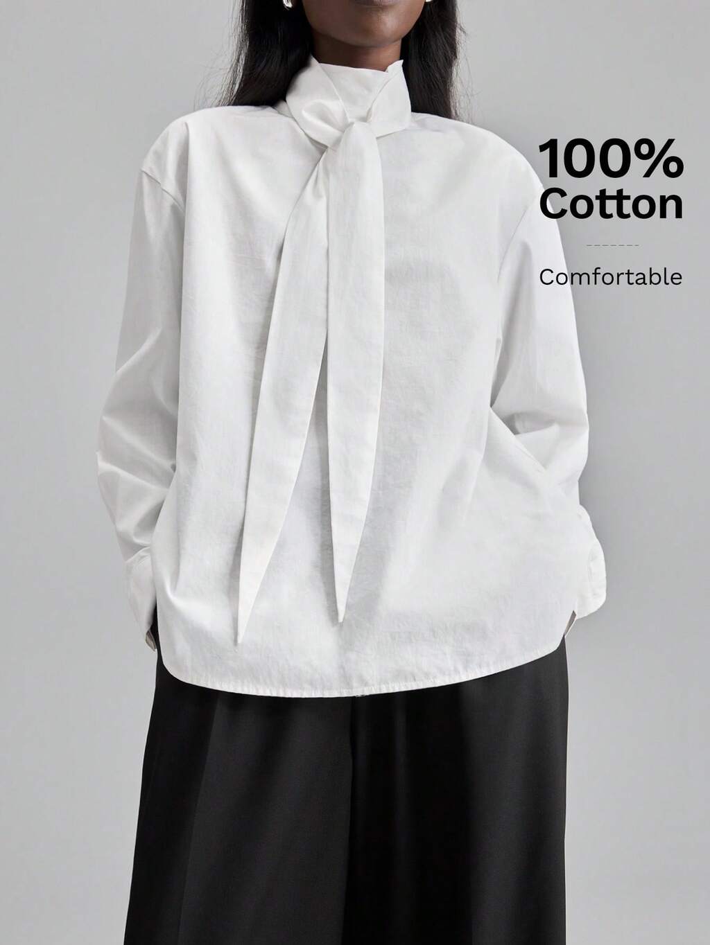 Blusa bianca casual elegante da donna, in tessuto lavorato a trama semplice, con collo alla coreana, maniche lunghe, polsini con laccio, stile casual elegante per ufficio e aeroporto, moda urbana moderna