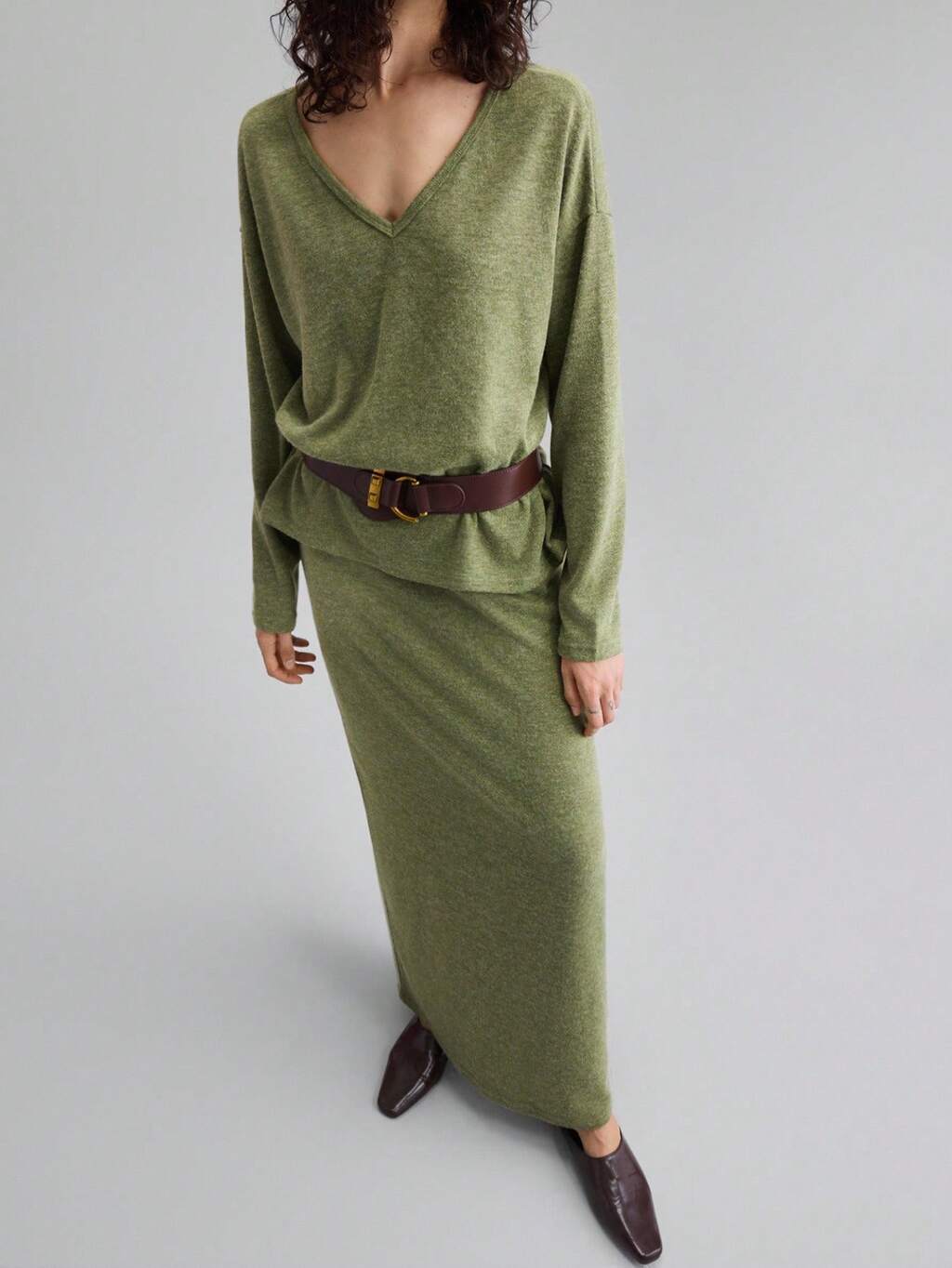 2025 New Women's Clothing, Autumn/Winter Apparel, All Season Wear, Winter Outfits, Back To School Women's Attire, Halloween & Christmas Outfits, Women's Teacher Uniforms, Casual Outings, Night Out Dresses, Wedding Guest Dresses, Elegant Wedding Guest Attire, Church Outfits, Women's Business Casual, Solid Color Minimalist Daily Wear, Long Sleeve Top, Green Skirt, 2-Piece Set