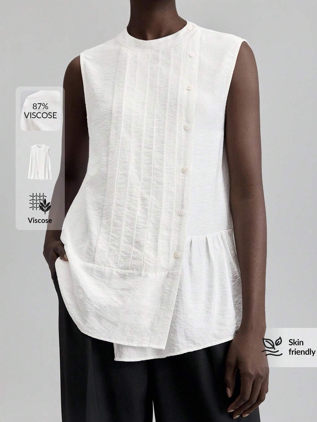 2026SS Women's Round Neck Sleeveless Semi-Sheer Blouse With Side Button, Long Casual Business Commuter Top, Elegant Outfit For Urban, Vacation, Wedding Guest, Party